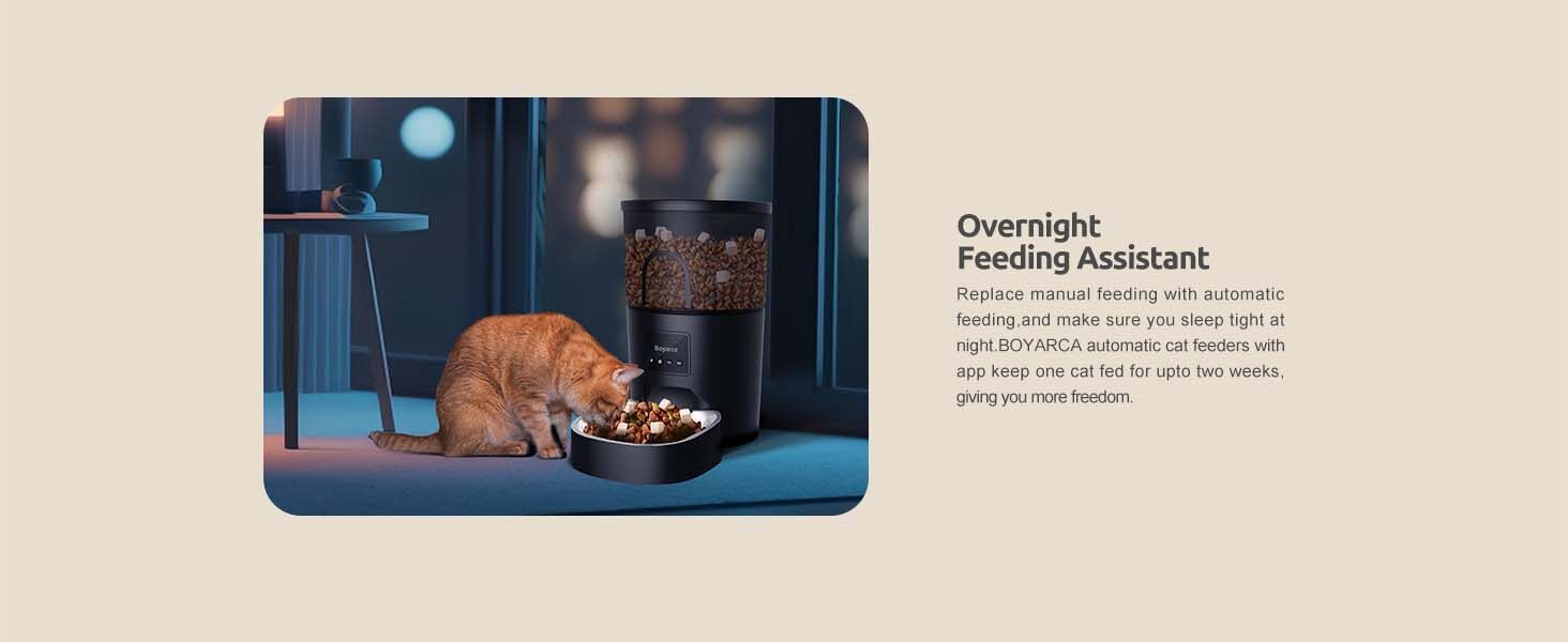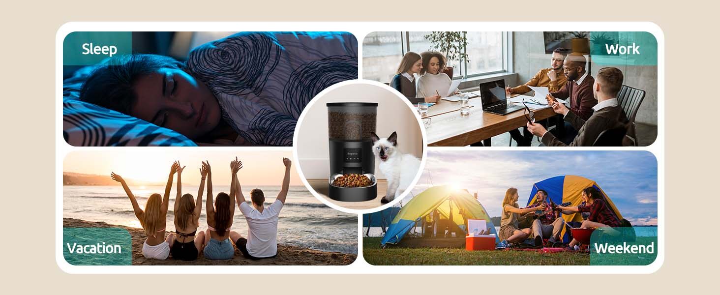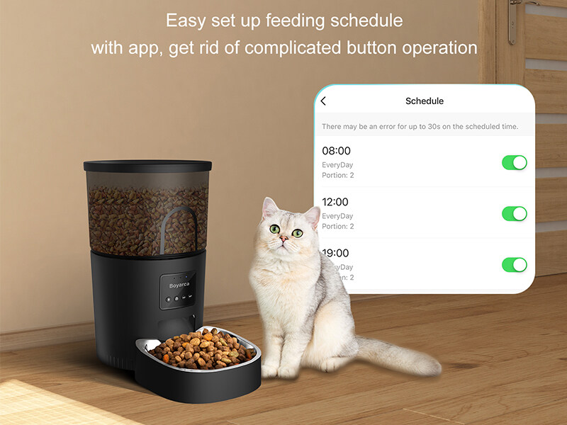 Reliable Electronic Pet Sitter: The automatic pet feeder for cats and dogs feeds automatically. It can automatically feed pets the right amount of pet food on time. With this small automatic dog feeder with APP control, you can go to class, go to work, take weekend vacations, travel abroad, see a doctor or be hospitalized, or attend dinner parties freely without any worries.