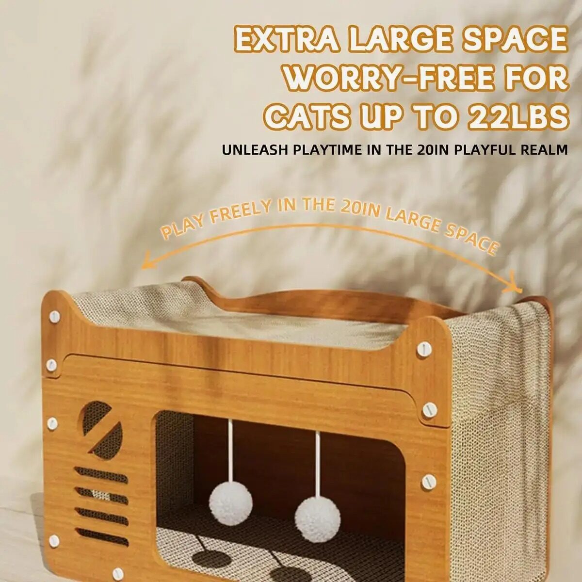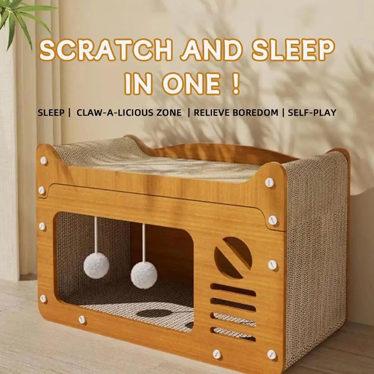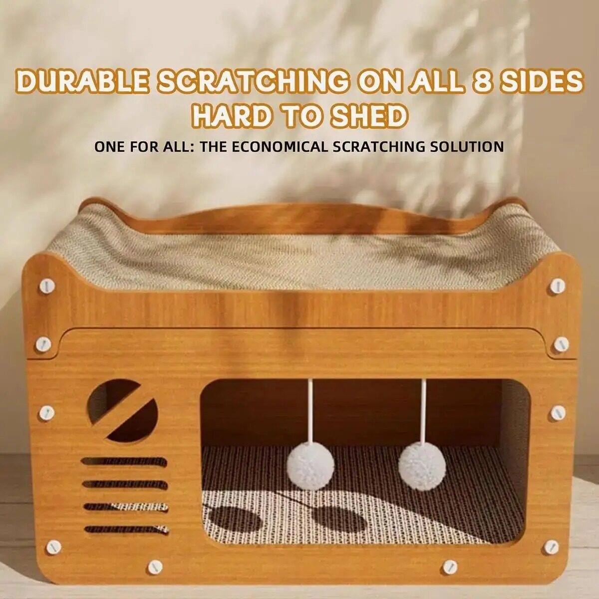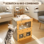 Dual-Purpose Design: This innovative cat furniture combines a cozy lounging bed with a scratching post and dangling toys to keep your feline friend entertained and engaged.
